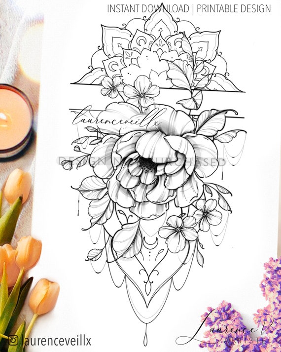 Instant Download Tattoo Design Peony And Mandala Tattoo Etsy Finland